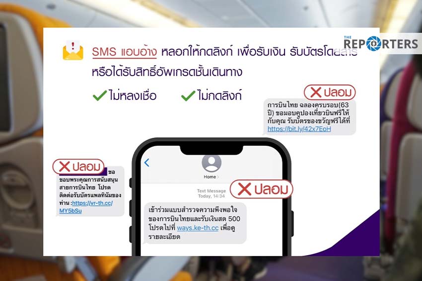การบินไทย เตือนภัยมิจฉาชีพ ‘ปลอมเพจ-ส่ง SMS หลอกลวง’ อย่าหลงเชื่อ