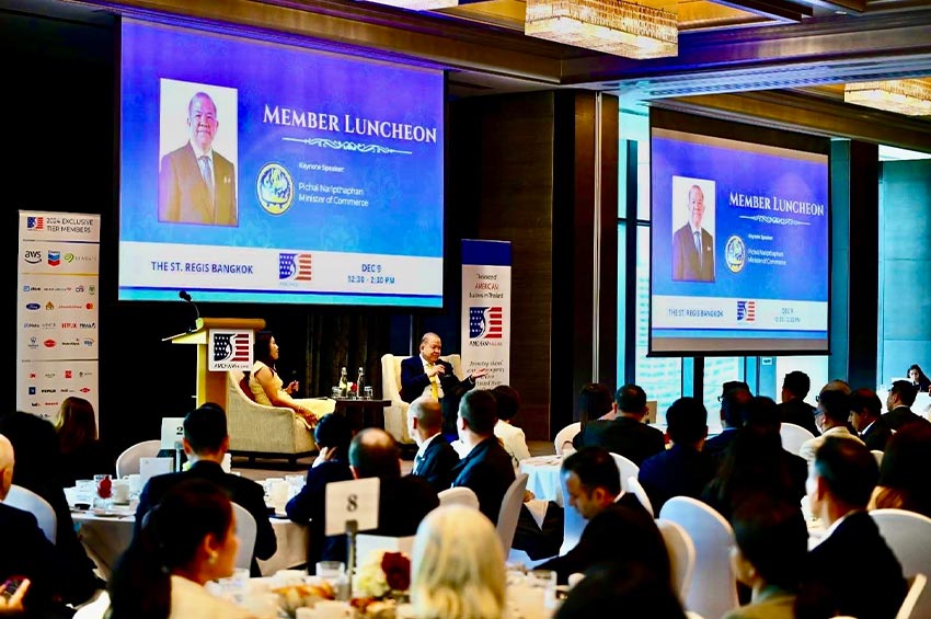 วันนี้ (10 ธ.ค. 67) นายพิชัย นริพทะพันธุ์ รัฐมนตรีว่าการกระทรวงพาณิชย์ ได้รับมอบหมายจาก นางสาวแพทองธาร ชินวัตร นายกรัฐมนตรี เป็นประธานเปิดและกล่าวปาฐกถาในงาน AMCHAM Member Luncheon ที่จัดโดยหอการค้าอเมริกันแห่งประเทศไทย (AMCHAM) โดยมีนางสาวอรกัญญา พิบูลธรรม ประธานหอการค้าอเมริกันในประเทศไทย (AMCHAM) นายโรเบิร์ต เอฟ. โกเดค เอกอัครราชทูตสหรัฐฯ ประจำประเทศไทย และสมาชิก AMCHAM เข้าร่วมกว่า 250 คน ณ โรงแรมเดอะ เซนต์ รีจิส กรุงเทพฯ วานนี้(9 ธ.ค.67)