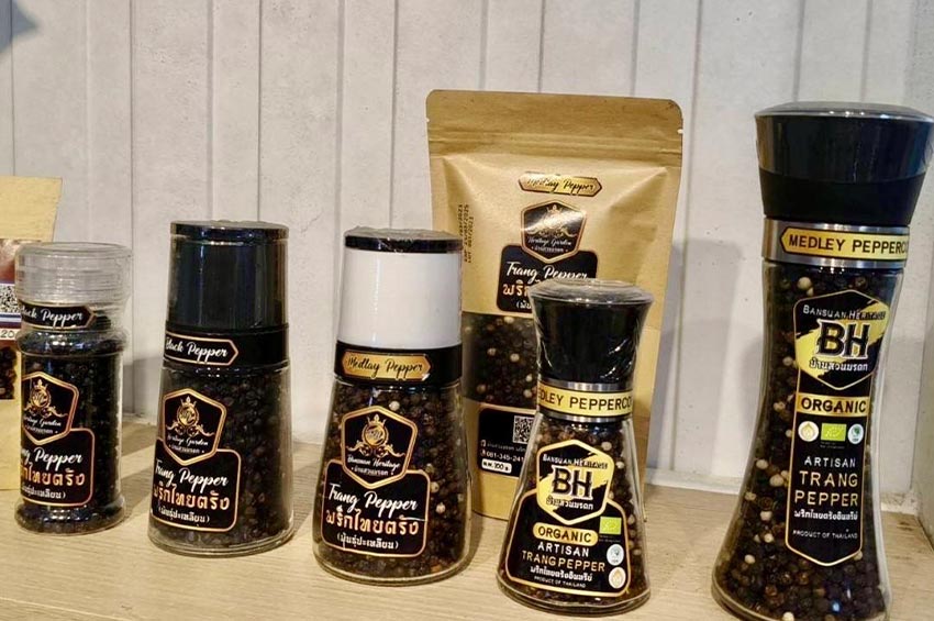 โดยได้ลงพื้นที่ไปยังบริษัท บ้านสวนมรดกพริกไทยตรัง จำกัด ตำบลทุ่งกระบือ อำเภอย่านตาขาว จังหวัดตรัง ซึ่งมีนายบัณฑิต ภิรมย์ทอง กรรมการผู้จัดการบริษัทบ้านสวนมรดกพริกไทยตรัง จำกัด ให้ข้อมูลด้านการปลูกพริกไทย พร้อมทั้งนำเยี่ยมชมแปลงปลูกพริกไทย ที่เป็นสินค้า GI ของจังหวัดตรัง รวมทั้งเป็นพริกไทยตรังอินทรีย์ มาตรฐาน EU Organic ผ่านมาตรฐาน อย. เป็นพริกไทยพันธุ์พื้นเมืองของจังหวัดตรังมานานกว่า 100 ปี รวมทั้งเป็นพืชสมุนไพรที่มีสรรพคุณทางยา ด้วยเป็นหนึ่งในพริกไทยที่มีสารสำคัญช่วยลดลิ่มเลือดในสมอง ซึ่งปัจจุบันผลิตไม่เพียงพอกับความต้องการของตลาด