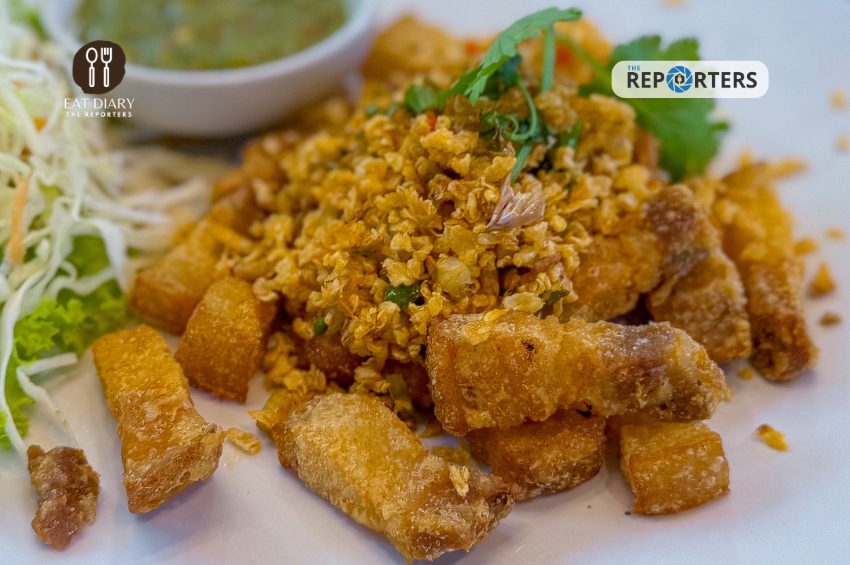 เสริมด้วยเมนูติดดาวของร้านอย่าง หมูสามชั้นคั่วเกลือ ที่อร่อยสมคำร่ำลือ เพราะทอดหมูสามชั้นได้กรอบแต่ไม่แข็ง คั่วกับเกลือ และกระเทียมกรอบรสชาติลงตัวไม่ต้องปรุง ไม่ต้องอะไรทั้งนั้น ตักใส่ปากแล้วฟินได้ทันที แป๊บเดียวหายเกลี้ยงหมดจาน เหมาะเป็นทั้งกับข้าว และกับแกล้มจริง ๆ จานนี้ 235 บาท ถูกใจใช่เลย!