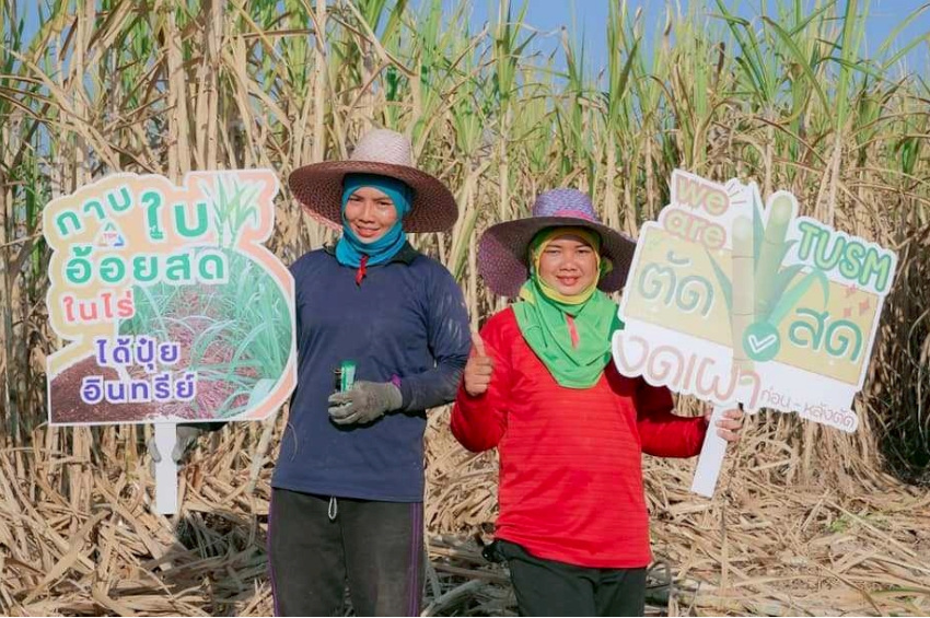 ดร.กนกวรรณ เผยต่อว่า “เราเชื่อมั่นว่าความยั่งยืนที่แท้จริงจะเกิดขึ้นได้ก็ต่อเมื่อ ทุกภาคส่วนในระบบนิเวศธุรกิจ เติบโตไปด้วยกัน มีแนวความคิดแนวเดียว เพราะความยั่งยืนไม่สามารถทำเพียงลำพัง ไม่สามารถจำกัดอยู่เพียงในโรงงานหรือภายในรั้วองค์กร หากแต่ต้องแผ่ขยายสู่ต้นน้ำ กลางน้ำ และปลายน้ำอย่างทั่วถึง ดังนั้นจึงขับเคลื่อนแนวทางนี้ผ่านโครงการ ‘อ้อยยั่งยืน’ที่มุ่งยกระดับทั้งเกษตรกรและระบบเกษตรกรรมให้เติบโตบนรากฐานของสิ่งแวดล้อมที่สมดุล โดยภายใต้โครงการนี้ได้มีการสนับสนุนให้เกษตรกรลดการเผาไร่อ้อย ซึ่งเป็นปัญหาสำคัญด้านมลพิษ โดยให้การสนับสนุนให้เกษตรกรใช้รถตัดอ้อยและ TSM Group จะรับซื้อใบอ้อยจากเกษตรกรเพื่อนำไปใช้ผลิตไฟฟ้าภายในโรงงาน ถือเป็นการลดการเผาและยังเพิ่มรายได้ให้เกษตรกรอีกด้วย พูดง่ายๆ คือเปลี่ยนใบอ้อยที่เคยถูกเผาทิ้งโดยเกษตรกรให้กลายเป็นพลังงานสะอาด นอกจากนี้ TSM Group ยังแจกขี้หม้อกรองหรือ Filter Cake จากกระบวนการการผลิตพลังงานหมุนเวียน กลับไปให้เกษตรกรใช้ในการบำรุงดินในไร่ ช่วยเสริมสร้างความอุดมสมบูรณ์ของดิน ลดการใช้ปุ๋ยเคมี และหมุนเวียนทรัพยากรให้เกิดประโยชน์สูงสุดตามแนวทาง Circular Economy”