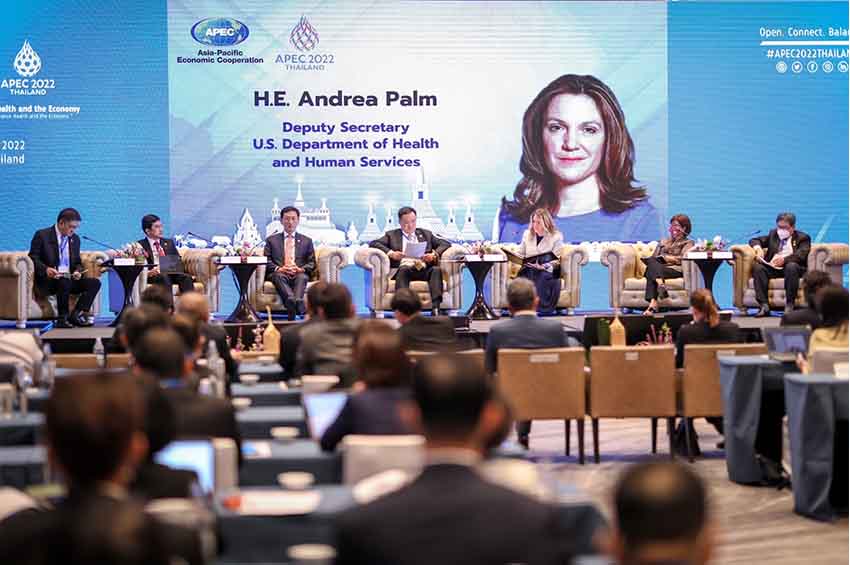 วันนี้ (25 ส.ค. 65) ที่โรงแรมมิลเลนเนียม ฮิลตัน กรุงเทพฯ ผู้สื่อข่าวรายงานบรรยากาศ การประชุมระดับรัฐมนตรีสาธารณสุขของเขตเศรษฐกิจเอเปคภายใต้หัวข้อ “Open to partnership. Connect with the World. Balance Health and the Economy. หรือ เปิดกว้างสร้างสัมพันธ์กับภาคี เชื่อมโยงกันกับโลก สู่สมดุลระหว่างสาธารณสุขและเศรษฐกิจ” ซึ่งเป็นการจัดประชุมด้านสาธารณสุขครั้งแรกของประเทศไทย (APEC Health Week) ระหว่างวันที่ 22-26 สิงหาคม 2565 โดยวันนี้เป็นวงเสวนา เพื่อถอดบทเรียนนานาชาติในการรับมือโรคระบาด ขณะที่พรุ่งนี้ จะเป็นการประชุม เพื่อแสวงหาความร่วมมือระหว่างกัน