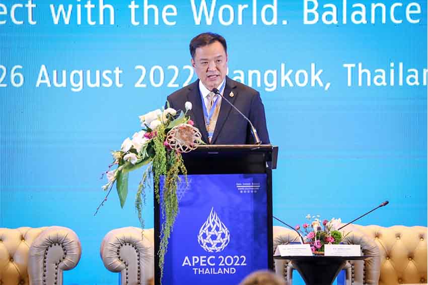 นายอนุทิน กล่าวว่า ยินดีเป็นอย่างยิ่งที่ได้ทำหน้าที่เป็นเจ้าบ้านต้อนรับผู้บริหารระดับสูงจากนานาชาติ มาร่วมประชุมในครั้งนี้ ซึ่งเป็นการต่อยอดมาจากที่ไทยจะได้เป็นเจ้าภาพจัดงานเอเปค ภายใต้หัวข้อ OPEN CONNECT และ BALANCE ถึงเวลาแล้วที่ ผู้คนจะต้องก้าวข้ามวิกฤติโควิด-19 และเปิดรับโอกาสใหม่ๆ เข้ามา ภายใต้การอยู่ร่วมกันกับโรคอย่างเข้าใจ ถึงเวลาที่เราจะต้องกลับไปเชื่อมสัมพันธ์ระหว่างกันอีกครั้ง พร้อมกับการสร้างสมดุลในเรื่องของสุขภาพ และเศรษฐกิจ ซึ่งมา ณ จุดนี้ การก้าวไปข้างหน้าต้องมองให้ครบทั้ง 3 มิติ เศรษฐกิจ สิ่งแวดล้อม และสังคม เราเคยมีบทเรียนจากช่วงการระบาดของโควิด-19 ที่เราทุ่มเทให้กับเรื่องสุขภาพ จนกระทั่งเกิดความเสียหายอย่างมากต่อระบบเศรษฐกิจ ปัจจุบัน เราต้องกลับมาบาลานซ์ 2 เรื่องนี้ ให้ไปด้วยกันได้