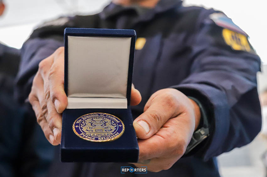 ภายหลังการกล่าวต้อนรับ พลเอกประยุทธ์ ได้มอบเหรียญที่ระลึกให้กับทีม USAR Thailand พร้อมกับทักทายสุนัขทั้ง 2 ตัวว่า “โชคดีนะ อายุยืนยาว ทำประโยชน์ต่อไปนะ”