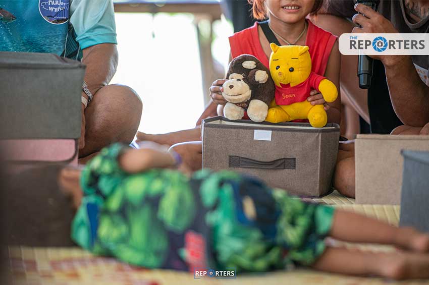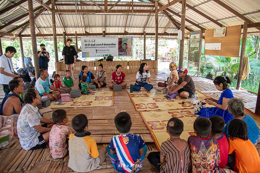 ชาวบ้านต่างนำของในความทรงจำใส่กล่อง ล้อมวงคุยที่ศาลาพอละจี ใจกลางบ้านบางกลอย อ.แก่งกระจาน จ.เพชรบุรี เพื่อแบ่งปันความทรงจำต่าง ๆ ผ่านข้อความหรือสิ่งของ