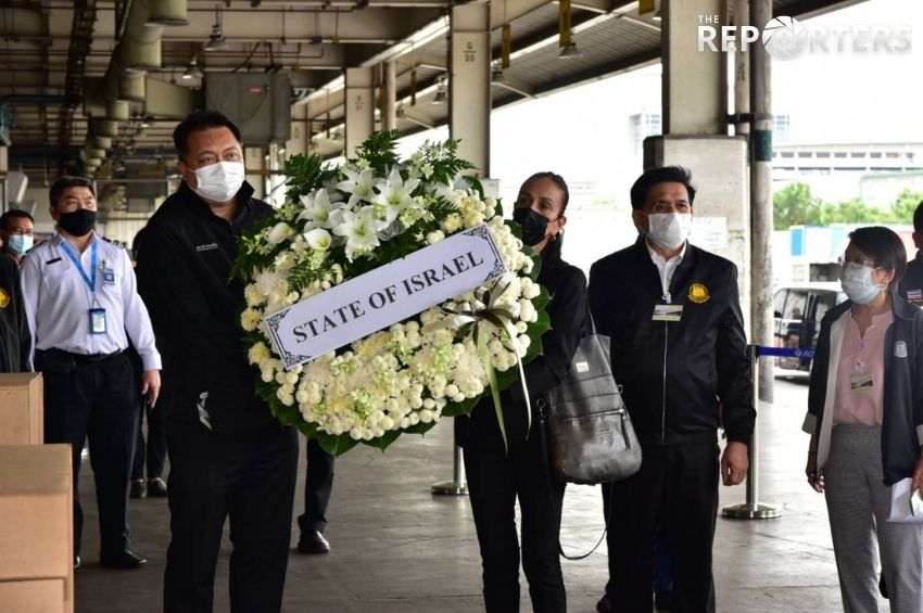 ผู้เข้าร่วมพิธีได้ยืนสงบนิ่งและจุดเทียนไว้อาลัยให้แก่ผู้เสียชีวิต ก่อนที่โลงศพของเสียชีวิตจะถูกลำเลียงไปยังเครื่องบินของสายการบิน EI AI เที่ยวบินที่ LY081 ซึ่งเป็นเที่ยวบินอำนวยความสะดวกนำคนไทยในอิสราเอลกลับประเทศไทยที่สถานเอกอัครราชทูตฯ จัดขึ้นและได้เดินทางออกจากท่าอากาศยานเบนกูเรียนเวลา 22.00 น. ของวันที่ 25 พ.ค.64 และมาถึงท่าอากาศยานสุวรรณภูมิในวันนี้ (26 พ.ค.64) เวลา 12.30 น. โดยศพของผู้เสียชีวิตทั้ง 2 รายจะถูกนำส่งถึงภูมิลำเนาที่จังหวัดเพชรบูรณ์และบุรีรัมย์ทันทีที่เดินทางถึงท่าอากาศยานสุวรรณภูมิ