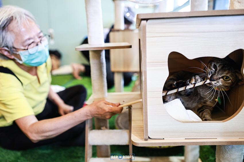 The Reporters ชวนทาสแมวมาเกาคาง ป้อนขนมแมวเลียที่ “Cat Cafe” ในงาน BKK EXPO 2024 ซึ่งเป็นน้องแมวจากศูนย์ควบคุมสุนัขกรุงเทพมหานคร (เขตประเวศ) ซึ่งเป็นน้องแมวที่ผ่านการดูแล ปรับพฤติกรรม ฉีดวัคซีนพิษสุนัขบ้า และทำหมันเรียบร้อยแล้ว