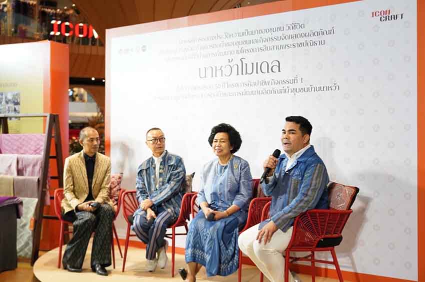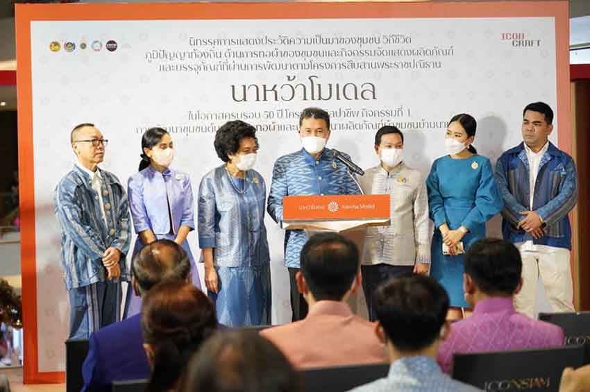 เมื่อวันที่ 21 ต.ค. ที่ไอคอนสยาม นายสุทธิพงษ์ จุลเจริญ ปลัดกระทรวงมหาดไทย พร้อมด้วย ดร.วันดี กุญชรยาคง จุลเจริญ นายกสมาคมแม่บ้านมหาดไทย เป็นประธานเปิดนิทรรศการแสดงประวัติความเป็นมาของชุมชน วิถีชีวิต ภูมิปัญญาท้องถิ่นด้านการทอผ้าของชุมชน และกิจกรรมจัดแสดงผลิตภัณฑ์และบรรจุภัณฑ์ที่ผ่านการพัฒนาตามโครงการสืบสานพระราชปณิธาน “นาหว้าโมเดล” ในโอกาสครบรอบ 50 ปีโครงการศิลปาชีพ โดยมี นายอรรษิษฐ์ สัมพันธรัตน์ อธิบดีกรมการพัฒนาชุมชน ผู้บริหารกรมการพัฒนาชุมชน นางจิรวรรณ เพ็ญพาส อุปนายกสมาคมแม่บ้านมหาดไทย คุณรติรส จุลชาต นายธนันท์รัฐ ธนเสฏฐการย์ ดร. ศรินดา จามรมาน คุณศิริชัย ทหรานนท์ นายวิชระวิชญ์ อัครสันติสุข คุณพีรพงศ์ พงษ์ประภาพันธ์ คุณอารยา จิตตโรภาส คุณปารีสา จาตนิลพันธุ์ ผู้แทนกลุ่มทอผ้าทั้ง 6 กลุ่มจาก อ.นาหว้า จ.นครพนม ได้แก่