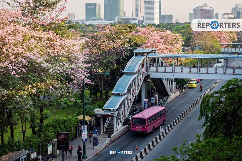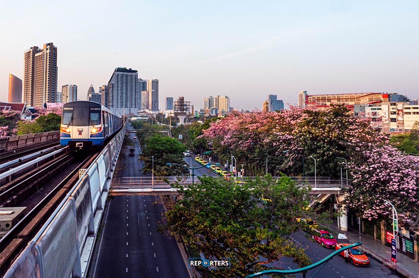 “ซากุระเมืองกรุง” บานสะพรั่งที่สถานีรถไฟฟ้าหมอชิต