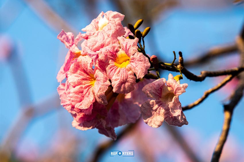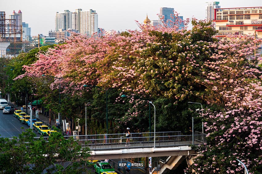 วันนี้ (25 ก.พ. 66) เวลา 07.00 ที่สถานีรถไฟฟ้าหมอชิต เริ่มเห็น “ดอกชมพูพันธุ์ทิพย์” บานตลอดแนวสวนจตุจักร และหมอชิต โดยในช่วงเดือนกุมภาพันธ์ของทุกปี จะเป็นเวลาที่ต้นชมพูพันธ์ทิพย์ออกดอก ประชาชนจำที่เดินทางด้วยขนส่งสาธารณะแวะถ่ายรูปดอกชมพูพันธุ์ทิพย์ที่บานตลอดริมทาง