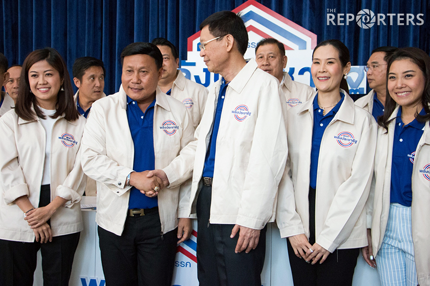 แกนนำพรรคพลังประชารัฐ นำโดยนายอนุชา นาคาศัย รองหัวหน้าพรรค ร่วมเปิดตัว พ.ต.ท.ฐนภัทร กิตติวงศา ส.ส.เขต 1 จันทบุรี ซึ่งถูกพรรคอนาคตใหม่ขับออกจากพรรคก่อนหน้านี้