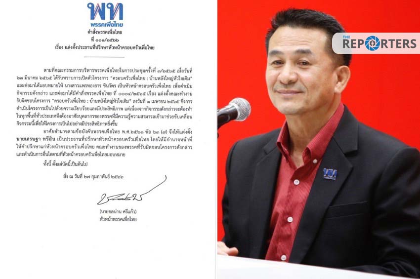“คำสั่งพรรคเพื่อไทย ที่ 001/2566 เรื่องแต่งตั้งประธานที่ปรึกษาหัวหน้าครอบครัวเพื่อไทย