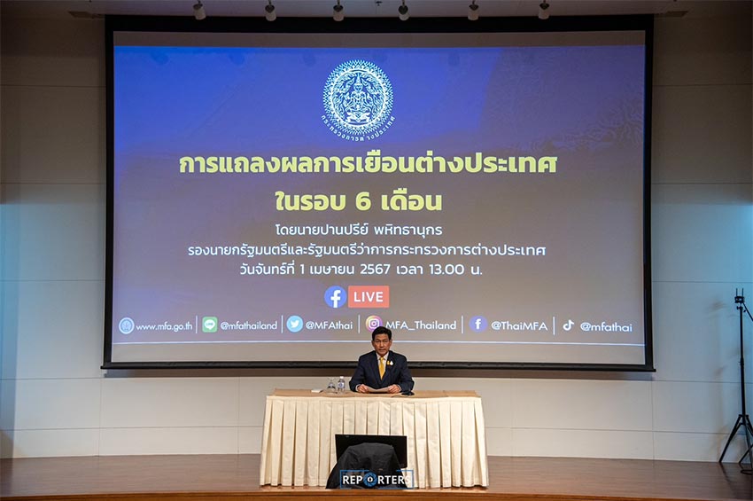 วันนี้ (1 เม.ย. 67) นายปานปรีย์ พหิทธานุกร รองนายกรัฐมนตรี และรัฐมนตรีว่าการกระทรวงการต่างประเทศ แถลงข่าวผลการเยือนต่างประเทศในรอบ 6 เดือน ที่กระทรวงการต่างประเทศ สำหรับสาเหตุที่ออกมาแถลงข่าวในวันนี้ เนื่องจากอยากจะมาเล่าสู่กันฟังว่า งานด้านการต่างประเทศ นายกรัฐมนตรี และรัฐมนตรีฯ ช่วยกันดำเนินการในเรื่องใดแล้วบ้าง ซึ่งรัฐบาลให้ความสำคัญกับนโยบายเชิงรุกด้านการต่างประเทศ ท่ามกลางการเปลี่ยนแปลงตลอดเวลา ความไม่แน่นอนของภูมิรัฐศาสตร์ ภูมิศาสตร์ ภูมิเทคโนโลยี ภาวะโลกร้อน และโอกาสที่เกิดการแพร่ของโรคระบาด นอกจากนี้เศรษฐกิจไทยยังพึ่งพาเศรษฐกิจโลกอยู่มาก เราจะสังเกตได้ว่าเศรษฐกิจได้รับผลกระทบ GDP ขยายตัวต่ำลง