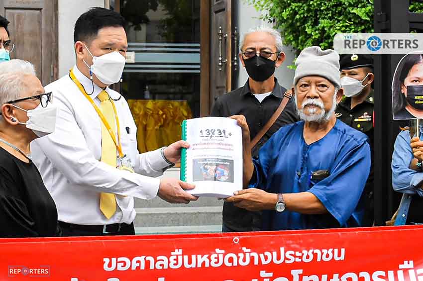 วันนี้ (1 ส.ค.65) บริเวณหน้าศาลฎีกา นายสุชาติ สวัสดิ์ศรี นักกิจกรรมพลเมือง โต้กลับ นางสาวทิชา ณ นคร นายวันชัย ตันติวิทยาพิทักษ์ รศ.ดร.ยุติ มุกดาวิจิตร นางสาวชุมาพร แต่งเกลี้ยง เป็นตัวแทนภาคประชาชน นำ 13,839 รายชื่อ จากแคมเปญ “ขอศาลยืนหยัดข้างประชาชน” ใน Change.org/FreeOurFriends2022 มายื่นต่อประธานศาลฎีกา ขอให้ปล่อยตัวนางสาวเนติพร เสน่ห์สังคม (บุ้ง) นางสาวณัฐนิช ดวงมุสิทธิ์ (ใบปอ) และผู้ถูกคุมขังทางการเมืองอื่น ๆ