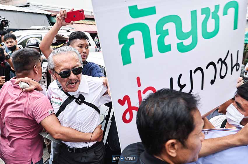 จากนั้นนายชูวิทย์ ได้พยายามจะเข้าไปด้านในโดมที่นายอนุทินกำลังปราศรัย ปรากฏว่ามีทีมงานของพรรคภูมิใจไทย และประชาชนที่มาฟังการปราศรัย ได้เข้ามาสกัด ตะโกนต่อว่าด่าทอนายชูวิทย์ พร้อมไล่ให้ออกจากพื้นที่ และส่งเสียงเชียร์นโยบายกัญชาเสรีของพรรคภูมิใจไทย ซึ่งนายชูวิทย์ ก็ยังคงพยายามที่จะดันเข้าไป ทำให้เกิดการปะทะ และยื้อแย่งกันของทั้ง 2 ฝ่าย ก่อนที่ตำรวจ สน.ดินแดง จะเข้าห้าม และพาตัวนายชูวิทย์ถอยออกมา