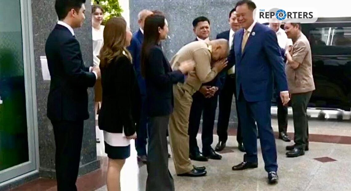 วันนี้ (2 พ.ค. 68) ผู้สื่อข่าวรายงานว่า ที่กระทรวงมหาดไทย ระหว่างที่ นายอนุทิน ชาญวีรกูล รองนายกรัฐมนตรี และรัฐมนตรีว่าการกระทรวงมหาดไทย เดินทางเข้ากระทรวง พบว่า นายวีระพันธ์ ดีอ่อน ผู้ว่าราชการจังหวัดปราจีนบุรี มายืนรอต้อนรับ ก่อนจะยกมือไหว้นายอนุทิน นายอนุทินจึงใช้มือตบไปที่ไหล่ และมีการพูดคุยกันสักพัก ก่อนที่นายอนุทินจะเดินทางขึ้นไปยังห้องทำงาน