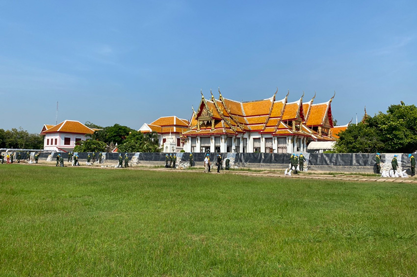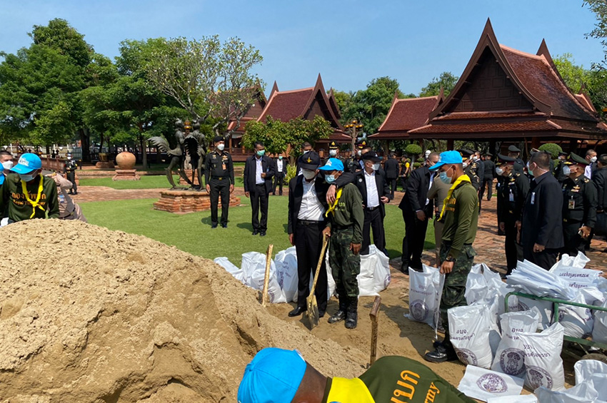 วันนี้ (2 ก.ย. 65) พล.อ.ประยุทธ์ จันทร์โอชา รัฐมนตรีว่าการกระทรวงกลาโหม ลงพื้นที่จังหวัด พระนครศรีอยุธยา ให้กำลังใจกำลังพลจากกองพันทหารม้าที่ 11 กรมทหารม้าที่ 4 กองพลทหารม้าที่ 2 รักษาพระองค์ ซึ่งรับผิดชอบงานติดตั้งพนังกั้นน้ำและสแตนเลสสูง 2.2 เมตรยาว 260 เมตร รวมถึงวางแนวกระสอบทรายอีก 6,300 กระสอบ ที่วัดกษัตริยารามราชวรวิหาร และรับฟังสถานการณ์ รวมถึงปัญหาในการช่วยเหลือประชาชน