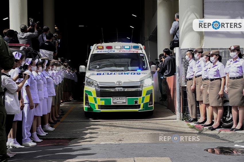 ผู้สื่อข่าวรายงานว่าระหว่างที่เคลื่อนร่างออกจากจุดรับศพของสถาบันนิติเวชวิทยา มีนักศึกษาวิทยาลัยพยาบาลตำรวจ จำนวน 66 คน ได้ยืนไว้อาลัยและร่วมส่งร่างผู้เสียชีวิตด้วย โดยร่างของผู้เสียชีวิต จะบรรจุในโลงขนาดใหญ่ 1 คนต่อ 1 โลง เพราะต้องการให้ผู้เสียชีวิตนอนสบายที่สุดในบ้านหลังสุดท้าย พร้อมกับเขียนลำดับผู้เสียชีวิตติดไว้ที่ฝาโลงด้วย