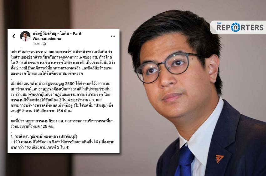 วันนี้ (2 พ.ย. 66) นายพริษฐ์ วัชรสินธุ โฆษกพรรคก้าวไกล โพสต์ข้อความผ่านเฟซบุ๊กชี้แจงกรณี สส. 2 รายที่มีพฤติกรรมคุกคามทางเพศว่า อย่างที่หลายคนทราบจากแถลงการณ์ของหัวหน้าพรรคเมื่อคืน ว่าในส่วนของข้อกล่าวเกี่ยวกับการคุกคามทางเพศของ สส.ก้าวไกลใน 2 กรณี กรรมการบริหารพรรคได้พิจารณาข้อเท็จจริงแล้วมีมติว่าทั้ง 2 กรณี มีพฤติการณ์ที่คุกคามทางเพศจริง และผิดวินัยร้ายแรงของพรรค โดยเสนอให้ขับพ้นจากสมาชิกพรรค
