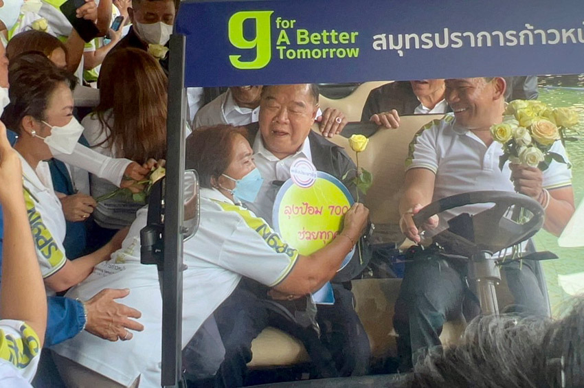 “ผมหวังเป็นอย่างยิ่ง ว่า การพบปะพี่น้องประชาชนในวันนี้จะทำให้ทุกภาคส่วน เข้าใจถึงความต้องการของประชาชนมากยิ่งขึ้น และถือเป็นโอกาสอันดีที่ได้มาเยี่ยมชมตลาดแห่งนี้ที่จะช่วยสร้างงาน สร้างรายได้ กระตุ้นเศรษฐกิจฐานราก ช่วยให้พี่น้องชาวสมุทรปราการมีคุณภาพชีวิตที่ดีขึ้น รวมไปถึงการพัฒนาเป็นศูนย์กลางเศรษฐกิจ และการท่องเที่ยวของจังหวัดสมุทรปราการต่อไป ผมในนามของหัวหน้าพรรคพลังประชารัฐ ขอฝากพรรคพลังประชารัฐไว้กับพี่น้องประชาชนชาวจังหวัดสมุทรปราการทุกท่านด้วยนะครับ โดยเฉพาะอย่างยิ่ง ท่านกำนันผู้ใหญ่บ้านนายกเทศมนตรี นายก…ทั้งหลายแหล่ ขอบคุณครับ” พลเอกประวิตร กล่าว