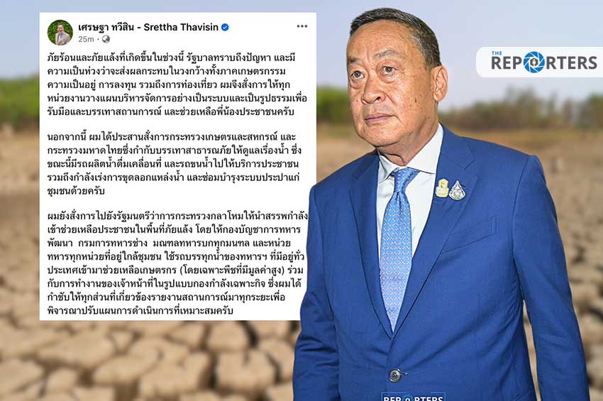 “ภัยร้อนและภัยแล้งที่เกิดขึ้นในช่วงนี้ รัฐบาลทราบถึงปัญหา และมีความเป็นห่วงว่าจะส่งผลกระทบในวงกว้างทั้งภาคเกษตรกรรม ความเป็นอยู่ การลงทุน รวมถึงการท่องเที่ยว ผมจึงสั่งการให้ทุกหน่วยงานวางแผนบริหารจัดการอย่างเป็นระบบและเป็นรูปธรรมเพื่อรับมือและบรรเทาสถานการณ์ และช่วยเหลือพี่น้องประชาชนครับ