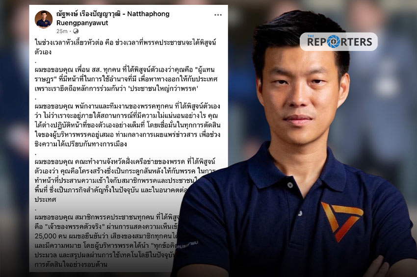 ขอขอบคุณ สมาชิกพรรคประชาชนทุกคน ที่ได้พิสูจน์ตัวเองว่า คุณคือ “เจ้าของพรรคตัวจริง” ผ่านการแสดงความเห็นเข้ามากว่า 25,000 คน ผมขอยืนยันว่า เสียงของสมาชิกทุกคนได้รับการรับฟังและมีความหมาย โดยผู้บริหารพรรคได้นำ “ทุกข้อคิดเห็น” เข้ามาประมวล และสรุปผลผ่านการใช้เทคโนโลยีในปัจจุบัน เพื่อประกอบการตัดสินใจอย่างรอบด้าน