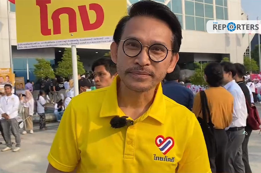 วันนี้ (4 เม.ย. 66) นายปราปต์ปฎล สุวรรณบาง ผู้สมัครสมาชิกสภาผู้แทนราษฎร (ส.ส.) กรุงเทพมหานคร (กทม.) พรรคไทยภักดี ให้สัมภาษณ์กับ The Reporters ขณะพรรคยื่นสมัครรับเลือกตั้ง ส.ส. แบบบัญชีรายชื่อ ณ ศาลาว่าการ กทม.2 (ดินแดง) เขตดินแดง กทม.