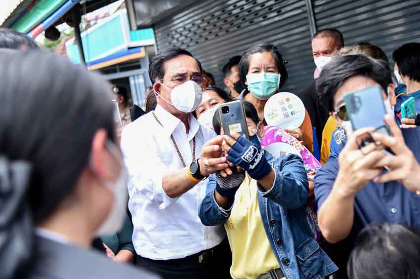 จากนั้นนายกฯเดินพบปะถ่ายรูปกับประชาชน พร้อมกล่าวสั้นๆ ว่า ตนไม่มีอะไรกับใคร ตนไม่เป็นศัตรูกับใครทั้งสิ้น แต่ใครทำร้ายแผ่นดินนี้ไม่ได้ ขอให้ช่วยกันดูแลประเทศชาติ ทั้งนี้ยังมีประชาชนมอบสร้อยคอลูกประคำ พร้อมเหรียญเสาร์ 5 หลวงพ่ออุตตมะ วังวังก์วิเวการาม จ.กาญจนบุรี ให้นายกฯคล้องคอ จากนั้นนายกฯและคณะได้เดินชม Sky Walk พร้อมกับถ่ายรูปเป็นที่ระลึก