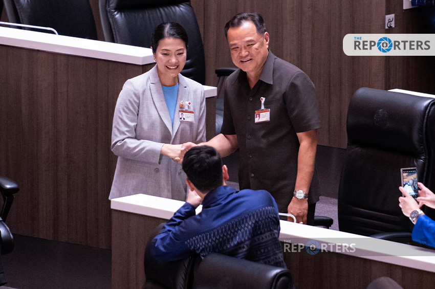 ผู้สื่อข่าวรายงานเพิ่มเติมว่า ร้อยเอกธรรมนัส พรหมเผ่า อดีตรัฐมนตรีว่าการกระทรวงเกษตรและสหกรณ์ สส. พะเยา พรรคพลังประชารัฐ ยังคงนั่งอยู่ที่ฝั่ง สส. พรรคเพื่อไทย โดยมีช่วงหนึ่งได้เข้าไปทักทาย และพูดคุยกับนายอนุทินเช่นเดียวกัน