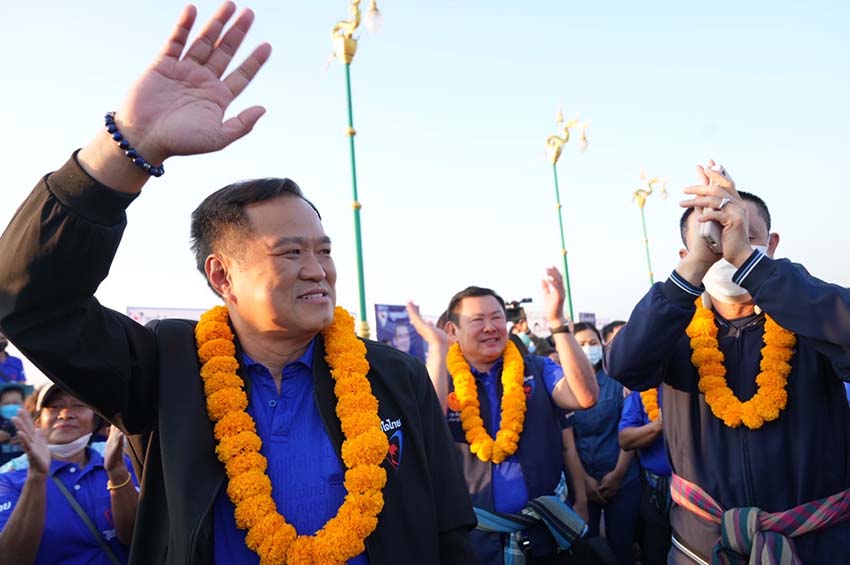 นายอนุทิน ขึ้นเวทีปราศรัยโดยระบุว่า รู้สึกม่วนใจ ที่เห็นพ่อแม่พี่น้องให้การต้อนรับอย่างอบอุ่น เป็นภาพที่ไม่เคยมีมาก่อน เชื่อว่าพี่น้องเบื่อความขัดแย้ง พรรคภูมิใจไทยจึงทำการบ้านอย่างหนัก วันนี้ตีโจทย์แตกเพราะคัดเลือกผู้สมัคร ส.ส.มาอย่างดีที่สุด เรามีสโลแกน “พูดแล้วทำ” หรือ “เว้าแล้วเฮ็ด” ซึ่งที่ไม่พูดแล้วทำก็มี เช่น ผลักดันให้สร้างสะพานข้ามโขงแห่งใหม่ จากจังหวัดหนองคาย สู่นครหลวงเวียงจันทร์ สปป.ลาว ในอีก 2-3 ปีข้างหน้า ซึ่งจะเป็นการเชื่อมต่อระบบรางทั้งรถไฟทางคู่ และรถไฟความเร็วสูง ไทย-ลาว-จีน