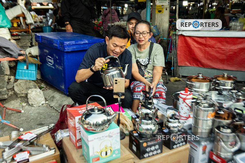 จากนั้น ดร.เอ้ ได้แวะทักทาย ‘เจ๊ทิพย์’ เจ้าของร้านขายเครื่องครัว หยิบกาต้มน้ำขึ้นมาโชว์พร้อมปล่อยมุก “มาซื้อ ‘กา’ เจ๊ทิพย์ แล้ว อย่าลืม ‘กา’ 49 นะครับ … นอนวันละ 2 ชั่วโมงก็อย่างนี้แหละครับ ขอบคุณครับ …” ทำให้ทั้งแม่ค้า และผู้สื่อข่าวมีรอยยิ้ม และเสียงเชียร์ไปเต็มๆ