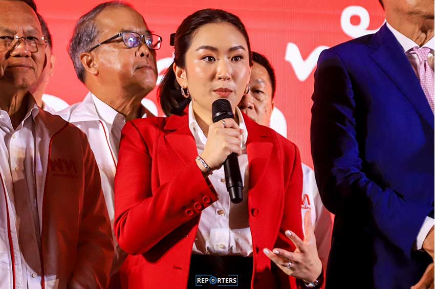 วันนี้ (5 เม.ย. 67) ที่ทำการพรรคเพื่อไทย นางสาวแพทองธาร ชินวัตร หัวหน้าพรรคเพื่อไทย พร้อมด้วยนายเศรษฐา ทวีสิน นายกรัฐมนตรี และรัฐมนตรีว่าการกระทรวงการคลัง นายเศรษฐา ทวีสิน แถลงข่าวภายหลังจบการปาฐกถา ในการประชุมใหญ่สามัญประจำปี 2567 พรรคเพื่อไทย