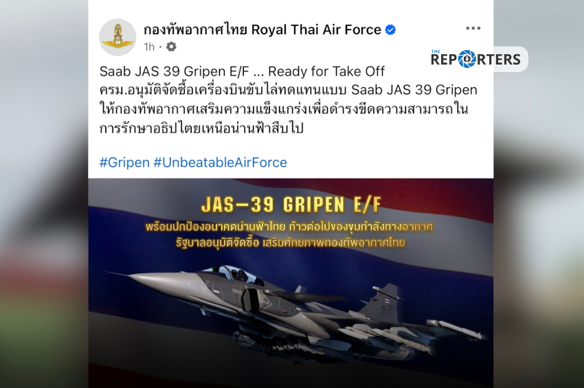 ครม.อนุมัติจัดซื้อเครื่องบินขับไล่ทดแทนแบบ Saab JAS 39 Gripen ให้กองทัพอากาศเสริมความแข็งแกร่งเพื่อดำรงขีดความสามารถในการรักษาอธิปไตยเหนือน่านฟ้าสืบไป