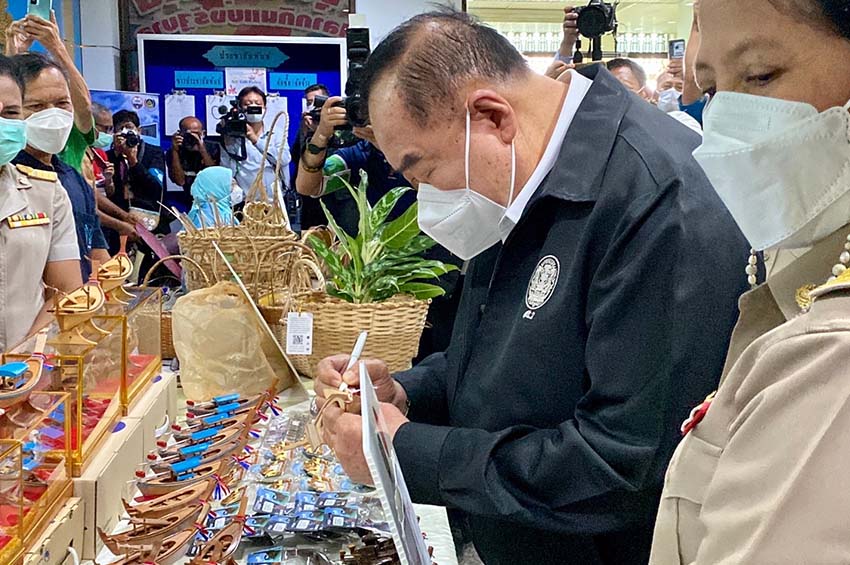 พล.อ.ประวิตร แจกลายเซ็นบนเรือหัวโทงจำลอง ชาวกระบี่ปลื้ม ลั่น “ใช้ใจบันดาลแรง” ทำงานให้ประชาชน บอกปาล์มราคาดี “รวยแล้วมาแบ่งผมบ้าง”