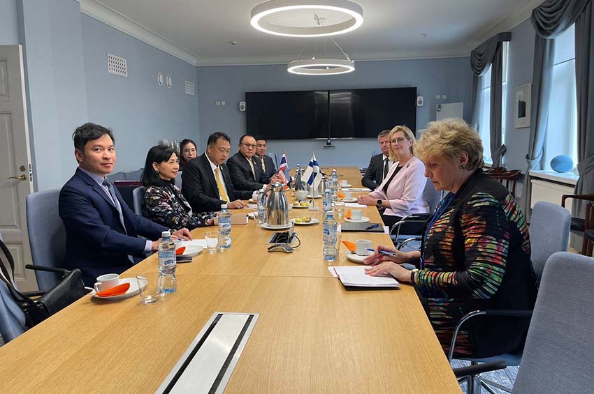 นางตูล่า ฮาไตเนน (Mrs.Tuula Haatainen) รัฐมนตรีว่าการกระทรวงการจ้างงานแห่งกระทรวงเศรษฐกิจและการจ้างงานสาธารณรัฐฟินแลนด์ กล่าวว่า ในนามรัฐบาลฟินแลนด์ขอขอบคุณท่านรัฐมนตรีว่าการกระทรวงแรงงานของไทยและคณะที่ได้เข้าเยี่ยมคารวะกระชับความร่วมมือด้านแรงงานในวันนี้ แรงงานไทยมีส่วนสำคัญอย่างมากในการขับเคลื่อนเศรษฐกิจของฟินแลนด์ เนื่องจากปัจจุบันมีแรงงานไทยเดินทางมาทำงานเก็บผลไม้ป่าเป็นจำนวนมาก ส่วนประเด็นข้อหารือต่างๆ ในวันนี้จะได้ประสานหน่วยงานที่เกี่ยวข้องเพื่อเร่งดำเนินการและแจ้งความคืบหน้าให้ทราบต่อไป