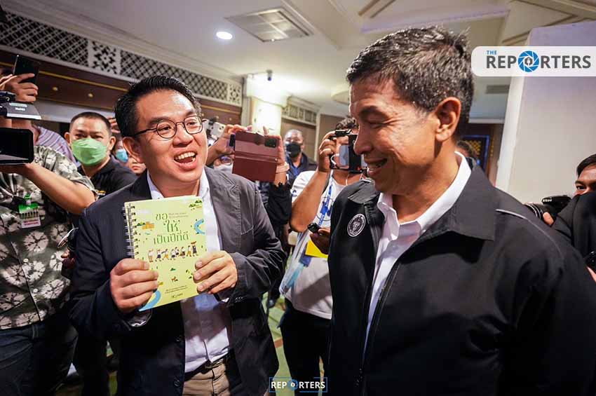 ผู้ว่าฯ ชัชชาติ รีบพูดตัดบท “อย่าเพิ่ง ยังมาไม่เต็มที่เลย รอก่อนๆ” ด้านนายวิโรจน์ ยิ้ม และตอบกลับว่า “ยังมาไม่เต็มที่ ผมอยากให้กำลังใจ”