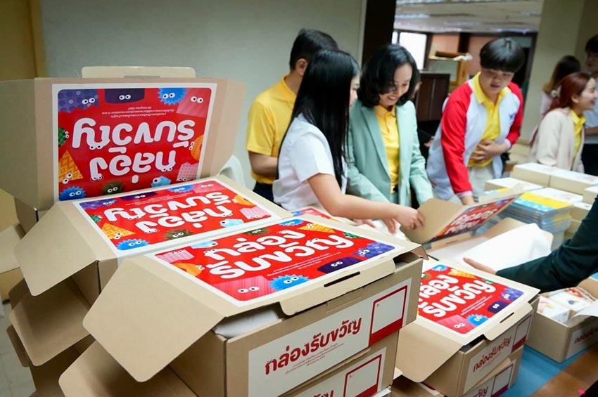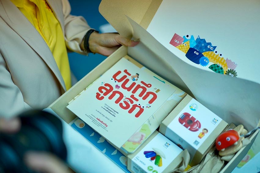 ในวันมหามงคลนี้ พรรคเพื่อไทยและภาคเอกชน จึงถือโอกาสพัฒนานโยบาย ‘ถุงรับขวัญ’ โดยยังคงตามแนวคิดการพัฒนาพื้นฐานสมอง (Brain Based Learning) ร่วมกับผู้เชี่ยวชาญในการพัฒนาองค์ความรู้ให้ตามยุคสมัย ออกมาเป็นนโยบาย ‘กล่องรับขวัญ’ ที่ภายในกล่องบรรจุสิ่งของสำหรับเป็นตัวช่วยให้ผู้ปกครองได้ใช้เสริมพัฒนาการของทารกให้เติบโตสมวัย