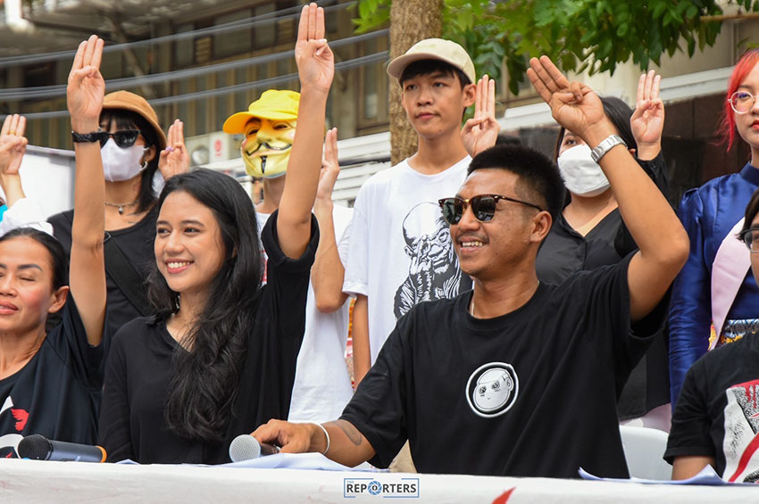 วันนี้ (6 ต.ค. 65) ที่มหาวิทยาลัยธรรมศาสตร์ ท่าพระจันทร์ กลุ่มราษฎร แถลงข่าวประกาศแนวทางการเคลื่อนไหว จี้รัฐบาลยุบสภา-ศาลรัฐธรรมนูญ พิจารณากฎหมายเลือกตั้งที่ค้างอยู่ทั้งหมดเพื่อเปิดโอกาสให้มีกฎหมายลูกโดยเร็วที่สุด-กกต.แบ่งเขตเลือกตั้ง กำหนดเกณฑ์ สูตรคำนวณคะแนนให้ชัดเจน โดยมี จตุภัทร บุญภัทรรักษา หรือไผ่ ดาวดิน, ภัสราวลี ธนกิจวิบูลย์ผล หรือมายด์, สมยศ พฤกษาเกษมสุข, ธนพัฒน์ กาไชย, ณัฐนิช ดวงมุสิทธิ์ หรือใบปอ และเนติพร เสน่ห์สังคม หรือบุ้ง และคณะ ร่วมแถลง