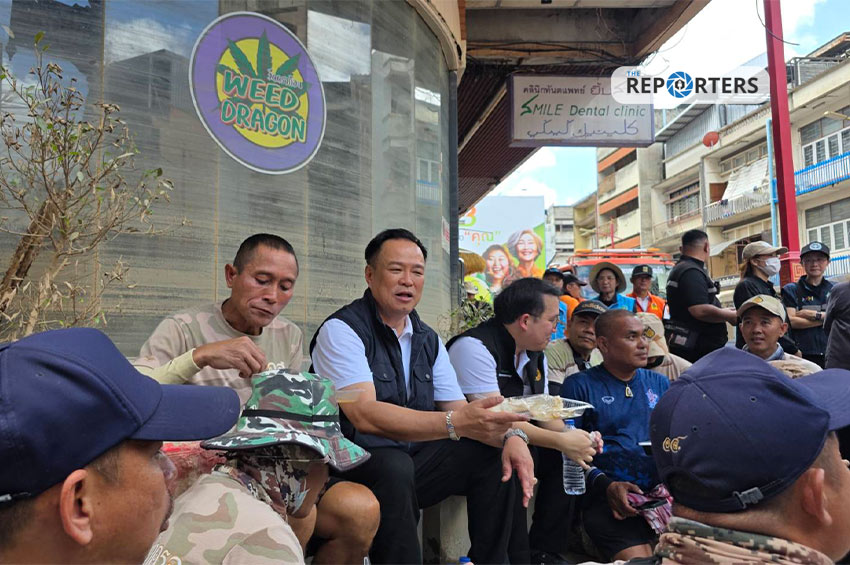 นายอนุทิน พร้อมนายพัฒนา พร้อมพัฒน์ รัฐมนตรีว่าการกระทรวงสาธารณสุข นายศักดิ์ดา วิเชียรศิลป์ รัฐมนตรีช่วยว่าการกระทรวงมหาดไทย และ นายอรรษิษฐ์ สัมพันธรัตน์ ปลัดกระทรวงมหาดไทย ได้นั่งริมฟุตบาทร่วมกินข้าวกล่องอย่างเป็นกันเองกับทีม อส. ที่มาช่วยงานในพื้นที่