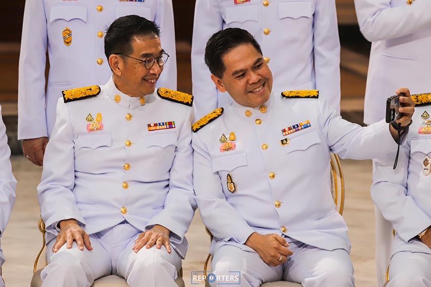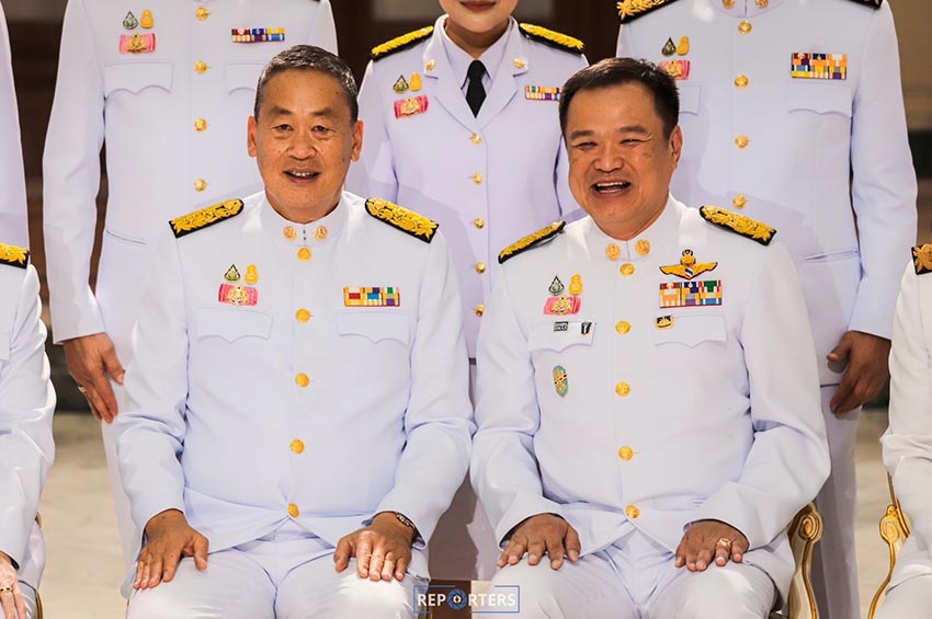 โดยบรรยากาศ มีรัฐมนตรีต่างทยอยเดินทางเข้าทำเนียบรัฐบาล เพื่อเตรียมรอถ่ายภาพหมู่ด้วยสีหน้ายิ้มแย้ม และร่วมกันถ่ายภาพอย่างพร้อมเพรียง ขาดเพียงนายสุทิน คลังแสง รัฐมนตรีว่าการกระทรวงกลาโหม