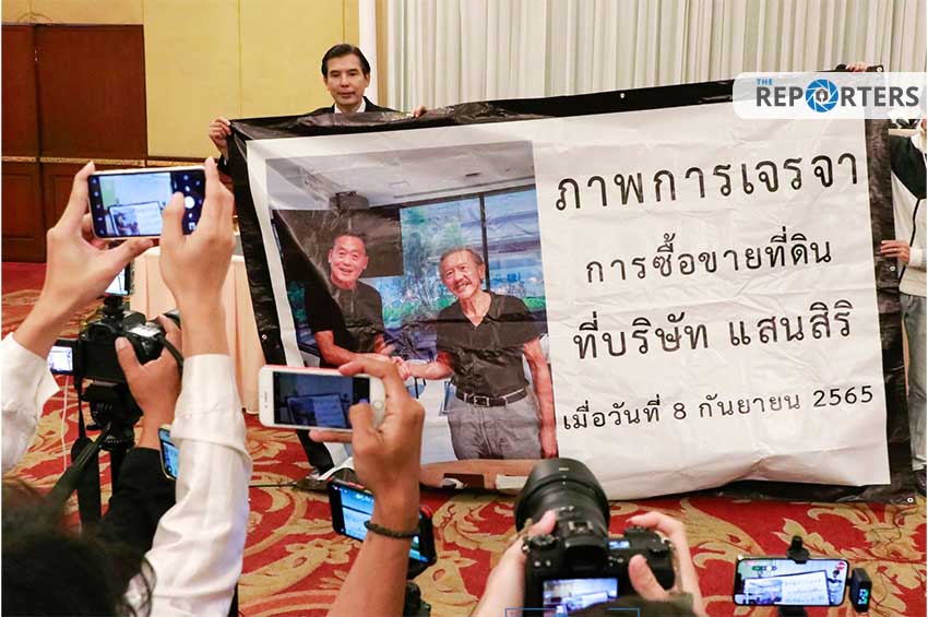 นายพร้อมพงศ์ กล่าวต่อว่านี่คือคำโกหก ตนเองมีภาพหลักฐานหลายภาพ ว่านายชูวิทย์เคยไปเจอกับผู้บริหารของแสนสิริ รวมถึงนายเศรษฐา ก่อนจะเปิดภาพการเจรจาซื้อขายที่ดินที่บริษัทแสนสิริ ระบุวันที่ 8 กันยายน 2565