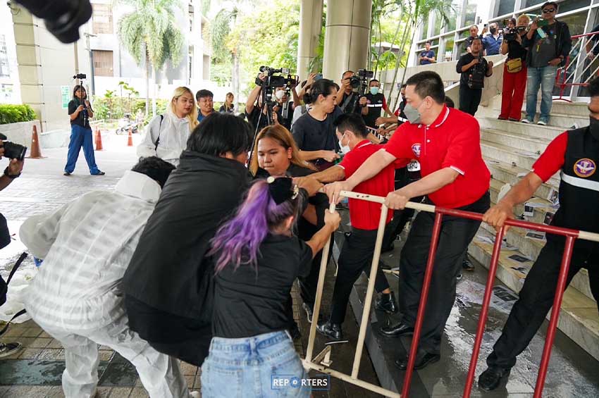 ‘ทะลุวัง’ บุก ‘เพื่อไทย’ หลังประกาศจัดตั้งรัฐบาลร่วมกับ ‘ภูมิใจไทย’ นำ แอลกอฮอล์มาฉีดพ่น ปิดทางเข้า – ออกพรรค ทำให้แกนนำพรรคเดินทางกลับไม่ได้