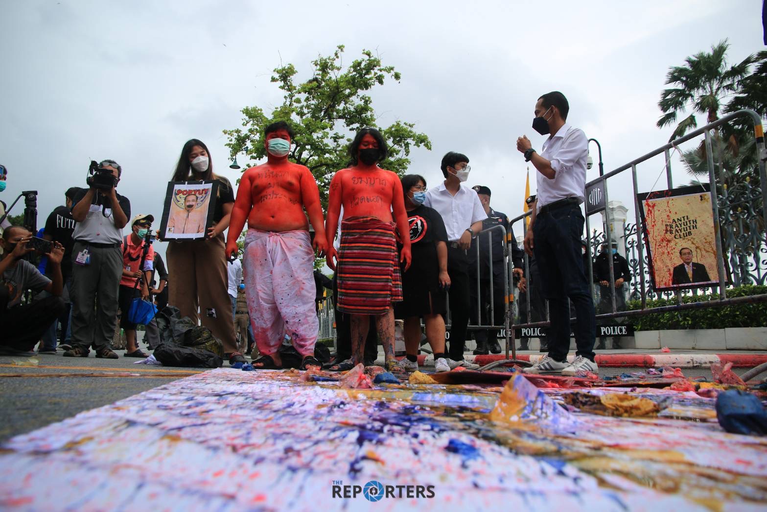 เครือข่ายรามคำแหง อ่านแถลงการณ์ หน้าทำเนียบ จี้ นายกฯ ลาออก เปิดทางให้สภาเลือกนายกฯ คนใหม่ พร้อมทำกิจกรรมสาดสีใส่รายชื่อ ส.ส.โหวตไว้วางใจ ในศึกซักฟอก