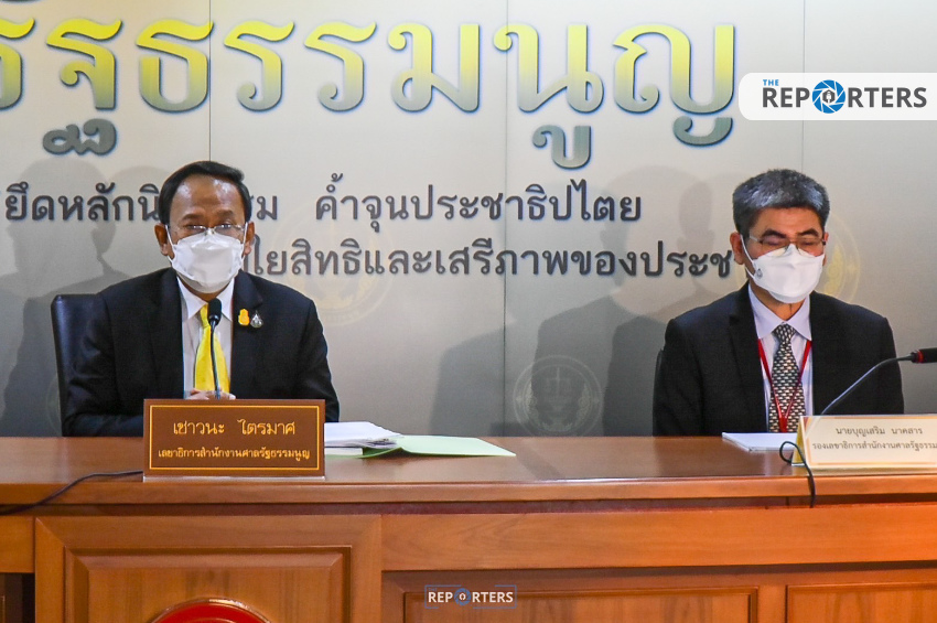 วันนี้ (7 ก.ย. 65) นายเชาวนะ ไตรมาศ เลขาธิการสำนักงานศาลรัฐธรรมนูญ และ นายบุญเสริม นาคสาร รองเลขาธิการสำนักงานศาลรัฐธรรมนูญ ตั้งโต๊ะแถลงข่าวก่อนที่วันพรุ่งนี้ (8 ก.ย. 65) ตุลาการศาลรัฐธรรมนูญจะนัดประชุมวาระพิเศษพิจารณาวาระการดำรงตำแหน่งนายกรัฐมนตรี 8 ปี ของพลเอกประยุทธ์ จันทร์โอชา