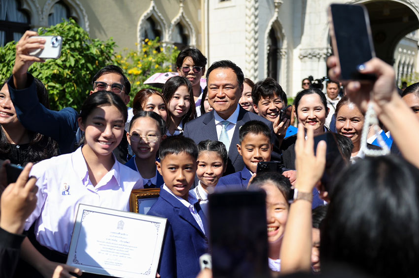 นายกฯ พาเด็ก และเยาวชนดีเด่น ถ่ายรูปตึกไทยคู่ฟ้า