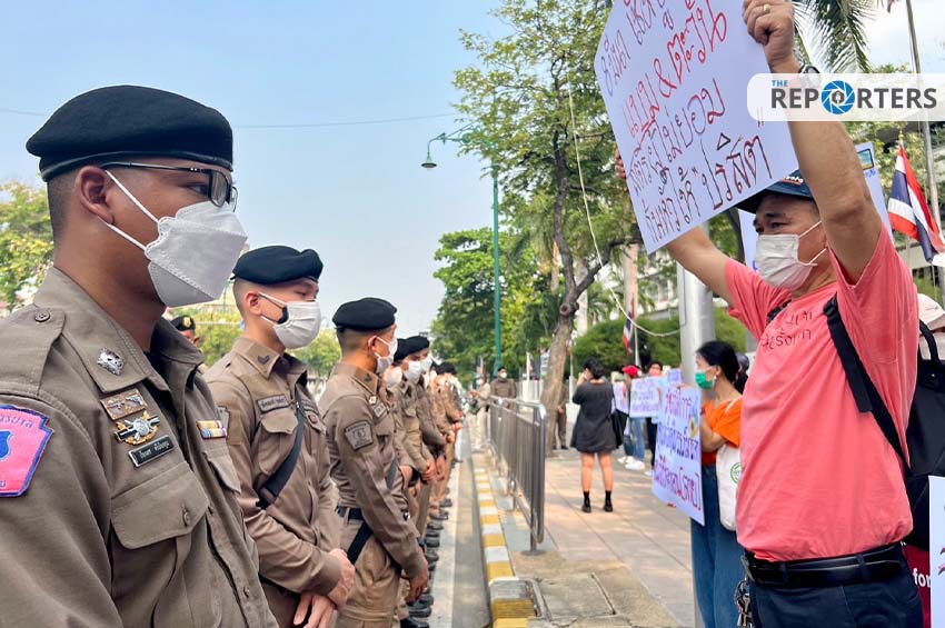 ทั้งนี้มีเจ้าหน้าที่ตำรวจจากสน.นางเลิ้ง สน.ดุสิต และเจ้าหน้าที่ชุดควบคุมฝูงชนคอยดูแลความสงบเรียบร้อยในพื้นที่
