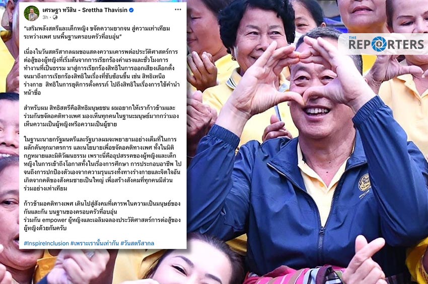 วันนี้ (8 มี.ค. 67) นายเศรษฐา ทวีสิน นายกรัฐมนตรีและรัฐมนตรีว่าการกระทรวงการคลัง โพสต์ เนื่องในวันสตรีสากล ว่า