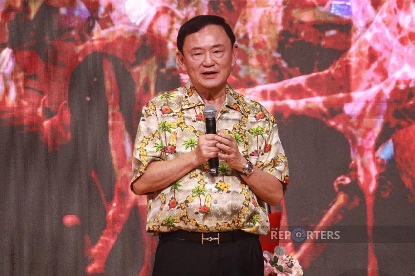 นายทักษิณ กล่าวด้วยความยินดีที่ได้พบปะทุกคน พร้อมขอบคุณสำหรับการจัดพิธีรดน้ำดำหัวในฐานะผู้ก่อตั้งพรรคไทยรักไทย พร้อมให้กำลังใจทุกคนให้เข้มแข็ง เนื่องจากสถานการณ์บ้านเมืองในปัจจุบันหนักหนากว่าสมัยที่ตนเองดำรงตำแหน่งนายกรัฐมนตรี โดยเปรียบเทียบว่าเศรษฐกิจฐานรากผุพังเหมือนเสาเรือนที่ซ่อมแซมยาก ต้องใช้เวลา ทุกคนต้องอดทนอธิบายให้ประชาชนเข้าใจ ซึ่งประชาชนก็มีความอดทนรอคอย