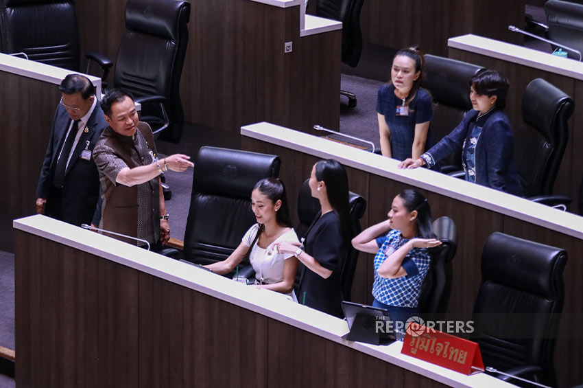 จากนั้น นายกรัฐมนตรี ได้เข้าไปพูดคุยกับกลุ่ม สส. จากพรรคภูมิใจไทย รวมถึงรัฐมนตรีของพรรคช่วงหนึ่ง ก่อนจะเข้าไปยังที่ประชุมสภาผู้แทนราษฎร เวลา 12.36 น. ซึ่งได้เดินทักทายกับ สส. ภายในห้องประชุม ทั้งฝ่ายค้านและรัฐบาล