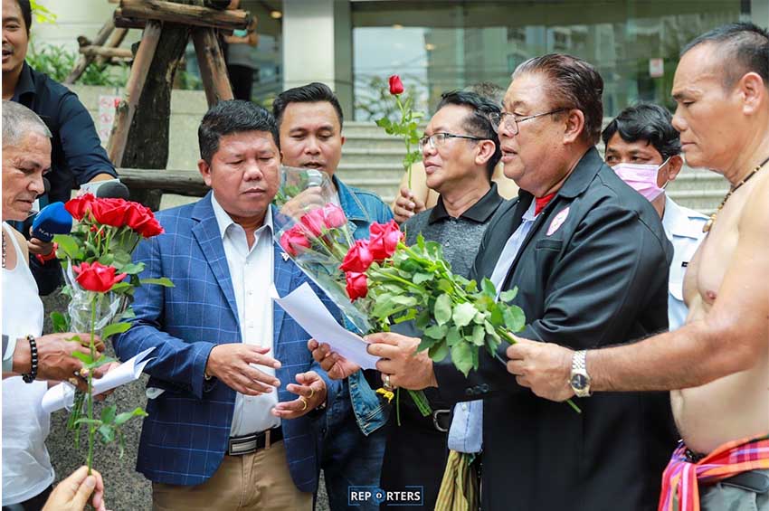 ต่อมาตัวแทนกลุ่มได้ยื่นดอกไม้ให้กำลังใจพรรคก้าวไกล ซึ่งมีนายสุเทพ อู่อ้น สส.บัญชีรายชื่อ พรรคก้าวไกล พร้อมมอบดอกกุหลาบเป็นกำลังใจ ในการปฏิบัติหน้าที่ สส. และการทำหน้าที่ในสภาต่อไป